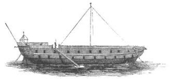 The prison ship Bonhomme, in my novel, is based on the most infamous of the real prison ships – the Jersey, shown at left. Most of my information in the “Prisoner” section came from a fascinating document, “Recollections of the Jersey Prison Ship,” a firsthand account by Capt. Thomas Dring. Despite unbearable conditions, American captives steadfastly refused their one chance for release: renouncing the Patriot cause and joining the British.
